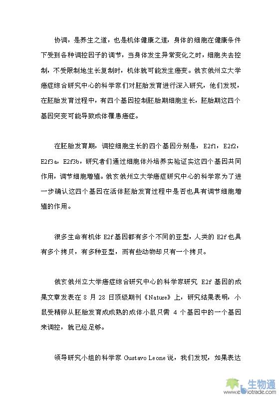控制癌細(xì)胞生長(zhǎng)的四個(gè)關(guān)鍵基因